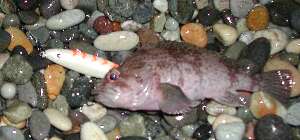 | 今回の 超 目玉 初めてルアーで釣りました! 03.4.5アイナメ 42cm ?kg 足元から5m程先で ドスンッ! と来ました 引くね〜〜 ビックリ! |