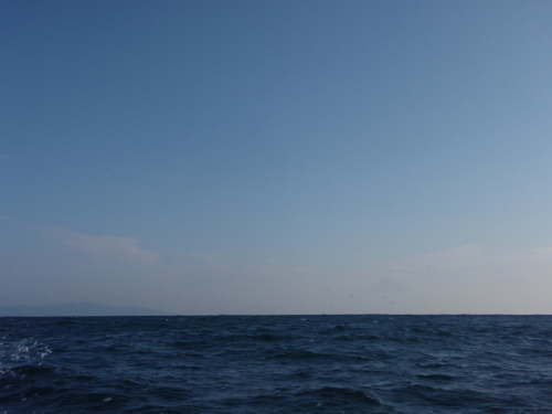| メンバーの多くもミヨシに立ち魚を探す。 かなりの長い時間なにも見つけられない時間が過ぎる。 ここ最近天気が良くて海が荒れていないので浮遊物がなかなか出来ない状況なんですねー |