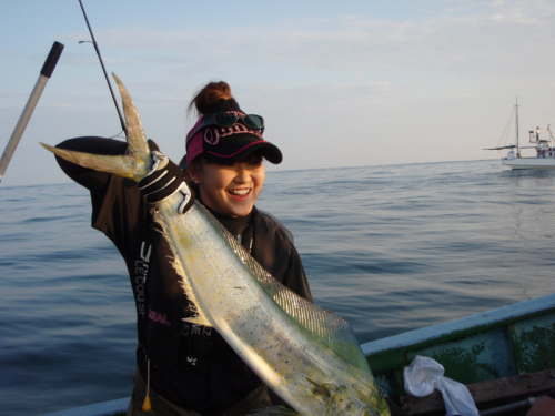 我が船の紅1点 mikaさん オフショア経験豊富な女性アングラー 見事な物持ち・・・ 俺もこんな画像が欲しかった(汗) 魚の頭が切れてるのは写真を撮った僕の腕が無いからで・・・ mikaさん 声優さんなんだそうですよー |