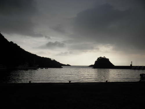 | 夕暮れの仁科港・・・ この写真を撮る前、ザ〜ッとひと雨降って涼しくなりました。 |