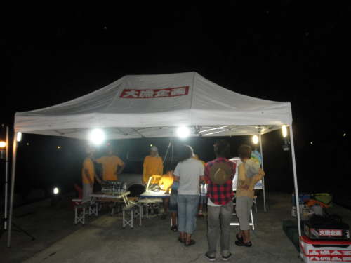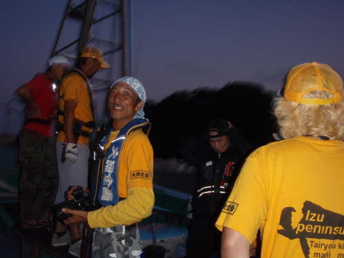 いよいよ開会式。大会ルール説明、船長の紹介等々有り 同船者のメンバーの発表。 僕は 海梟のボクサーがチームキャプテンのAチームに。 船は 惣晴丸 に決定! 黄色いTシャツを着たスタッフの皆さん(大漁企画の皆さん)は釣には参加せず、 サポートメンバーに回っていただき、魚の計測や取り込み、写真撮影等々裏方をして頂き参加者の僕らが何不自由なく釣をさせていただく(汗) |