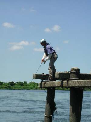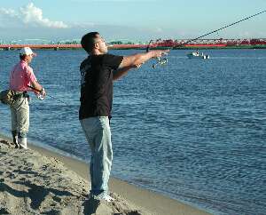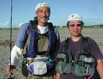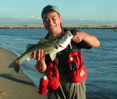 | この後昼食をはさみSLFCさんの事前情報から河口へとポイントを移した ここではSLFCの皆さん、海梟の皆さんすべての方がロッドを振る事になった 大場所の回遊待ちの釣りな為 私も竿を振りながらカメラを首から下げて参加させて頂きました デイで釣れている情報が出回っていた為 15時頃だと言うのに釣人が既に多い 私とtomoさんで人混みを外れた河口から少し外れた場所に入る その左側で 投げサビキ!?をされている方が居た 直後 その方のロッドに40cm弱のスズキがヒット! オーッ 居る居る 結局私には来ないんだけどね(笑) しばらくしてから周りの様子を見ているとおそらく地元の方であろう方のお一人が60クラスの魚を既にキャッチ ストリンガーに掛けている 又別の方で70クラスをキャッチする方も居た 菅原さん、SLFC、海梟の皆さんも黙々と思い思いの場所で振り続ける 各自時折休憩をはさみながら談笑 私も菅原さんとお話させていただいた 朝のうちは双方緊張が有ったためか?双方こわばっていた顔つきも会話も同じフィールドでロッドを振るという行為が 和みに変り色々な話をさせて頂きました 念願の記念撮影もして頂けたし、素に限りなく近い菅原さんとの会話も出来ました 中でも印象に残ったのが、本当に釣りが好きでいらっしゃる様で、前日は伊豆でシイラのメーターオーバー5本程 だそうです(笑) 「お忙しい中プライベートでの釣行 満足出来るくらい釣りが出来ますか?」の私の質問に「ハイ!」と笑顔で答えてくれましたよ もう一つ「釣りが好きで好きで仕方ないから 5畳半の狼 のMCやってるんですよ」「釣好きの皆さんと多くの会話をもてるのはとても楽しい事ですから」と仰られていました 笑顔がとても素敵な方でした |