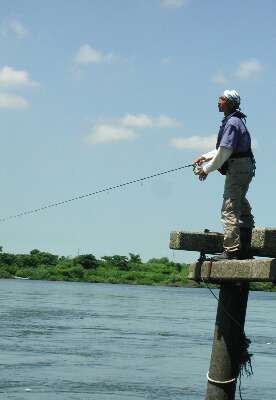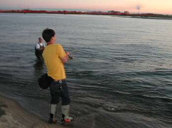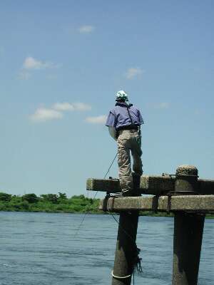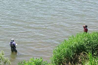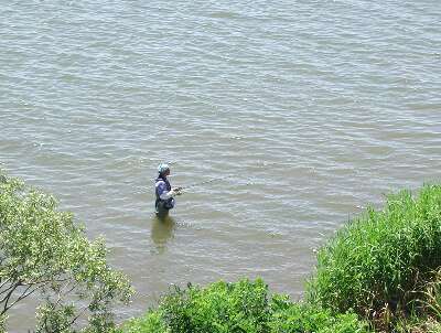 ポイントを移動し釣を再開 立ち込まれる菅原さん |