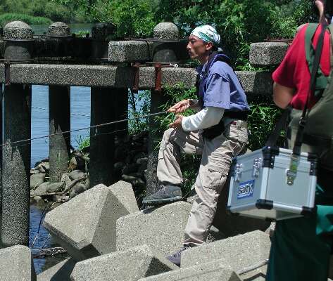 | Salty!の表紙、スカパー「五畳半の狼」等でご活躍されている 菅原正志 さんが新潟にお越しになると言う 菅原さんと是非逢ってお話がして見たい そしてプロの取材の様子をみて見たい 新潟にお邪魔する事となった 当初表紙撮影と言う事もあり、好天の中での撮影が望ましく、雨天の場合は中止の予定 梅雨の影響で前日まで曇天が続き時折小雨が混じるような天候 中止 の二文字が付きまとった 私は前日の26日に新潟入りする 13時過ぎ 新潟西インターを降り 海梟メンバーの皆さんとのお決まりパターン(笑)で黒崎の本間釣具店にて合流 この頃には 撮影決行 情報が入り ホッとする 明日には・・・ 26日夜 釣りor呑み の選択を迫られたがよくばりな私が 釣りand呑み を選択し皆を巻き込む事に(笑) 先に釣りを決行 新潟初フィッシュをまたもや惜しくも逃してしまった あ〜〜残念無念 次こそは! 余談ですが、今になって考えると前回もバラシた時に横に居るのは アンチジャイアンツ!?のsatoru君だ(爆) その後海梟のメンバーの皆さんと呑みを開始 酒好きのメンバーが多いチーム 結果 呑み過ぎ&連夜の寝不足(笑) 翌朝再度釣をする約束をし皆さんと一旦別れ、tomoさん宅に泊めて頂いた いつも悪いねtomoさん 変って 27日 一気に梅雨が明けた 前日までの天候が嘘のような 晴天だ! ジリジリとうだるような熱さ 澄み渡った青空がまぶしい! 良い撮影日和になった ラッキー! しかし寝坊した私とtomoさん 待ち合わせ時間から約1時間遅れでポイントに到着 satoru君と合流 早朝なのに汗が止まらない 夏一色って感じ 2時間位は釣をしただろうか!? 魚からの反応は無かったもののフィールドの豊かさに感動を覚えた もっと近かったらなー(笑) AM10時30分 SLFCの皆さん、Salty!杉田編集長、菅原さんと合流 軽い打ち合わせ SLFCの皆さんから状況説明その後の運びについて説明を受ける 菅原さんは表紙撮影を兼ね釣をされる と言うのが今回の目的だと理解 地元チームのSLFCさん、海梟さんがサポートし、菅原さんにポイントを見て頂きここぞと言う所を叩いていく そんな感じだった 始めに入ったポイント 早くも菅原さんのアングラー魂に火が付いた 早々に釣りの準備を始めた 杉田編集長の撮影も始まる お二人ともうだるような暑さの中 黙々と個々の仕事をされる 撮影される側とする側 プロとして釣をされる菅原氏 その一部始終をプロとして撮影する杉田編集長 双方けしてピリピリしているわけではなく、とても冷静で良い緊張感が伝わって来る う〜〜ん スゲーッ! 杉田さん、菅原さん お二人から プロのオーラが出まくっていた |