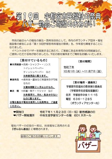 申込先 :宇都宮市民福祉の祭典実行委員会事務局
